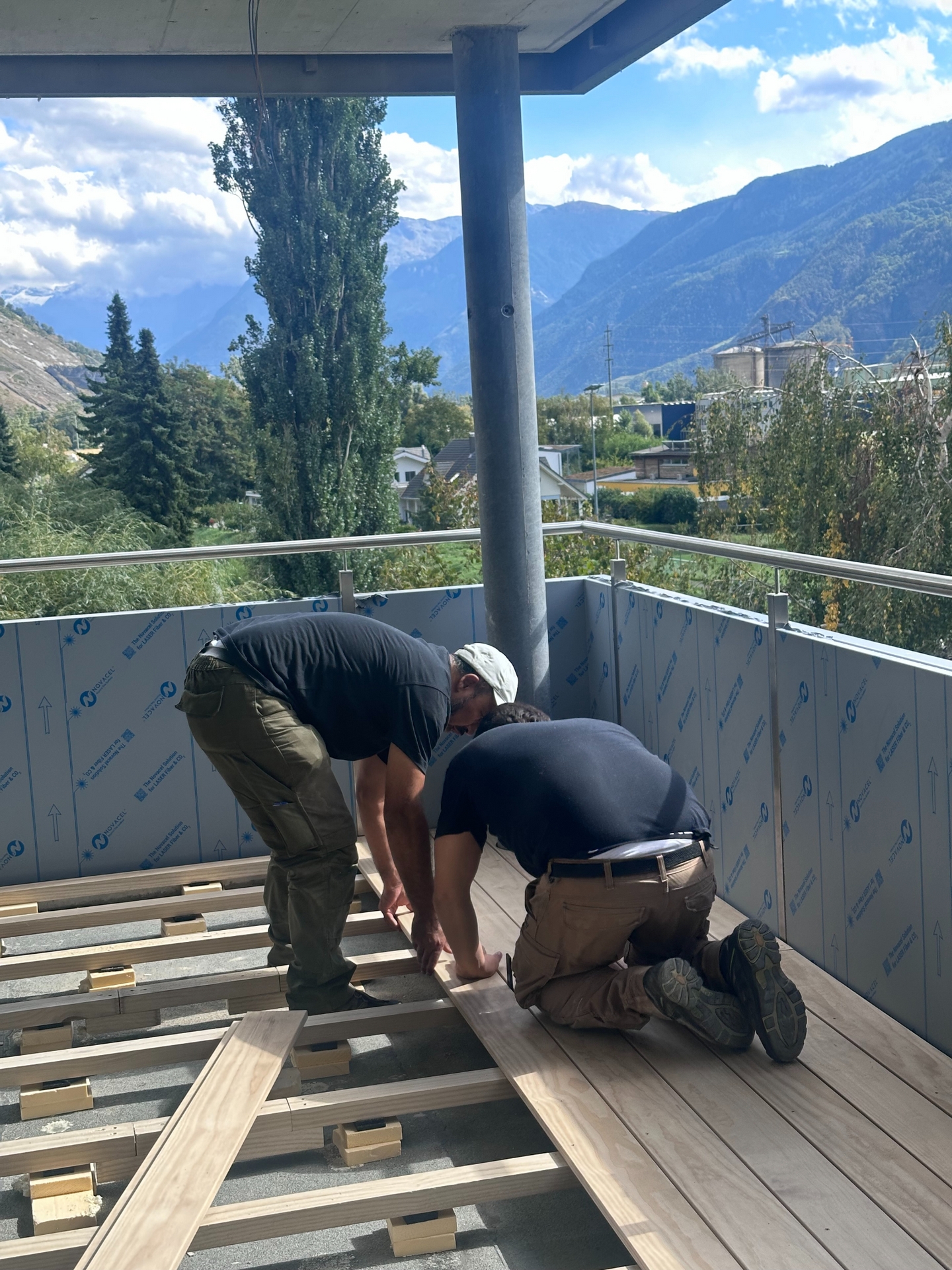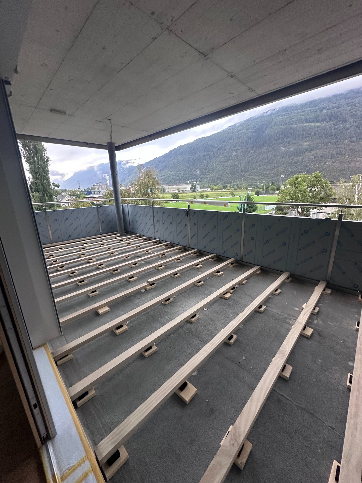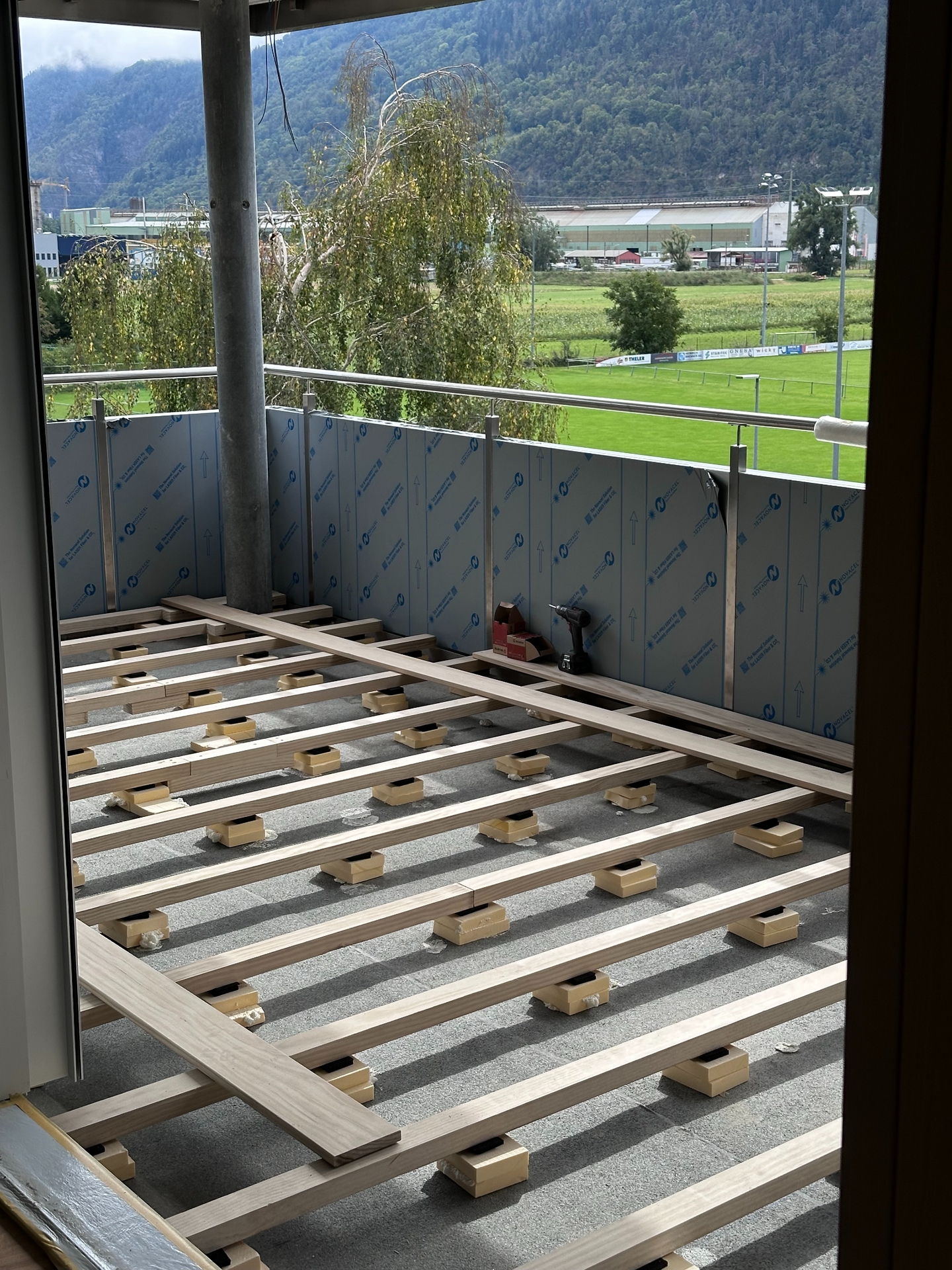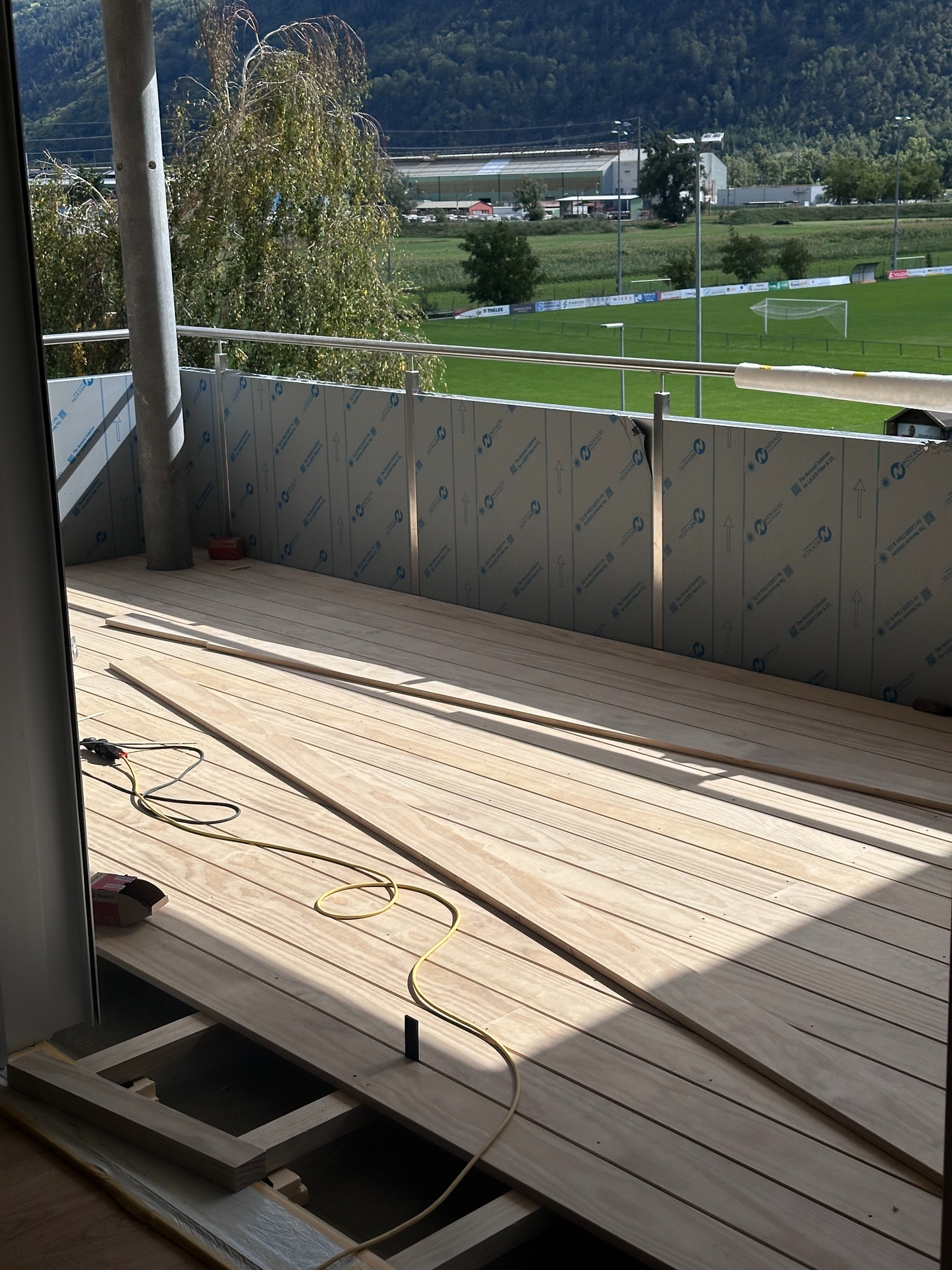 Für den Neubau in Steg durften wir eine grosszügige Bodenterrasse aus hochwertigem Akazienholz planen und umsetzen.